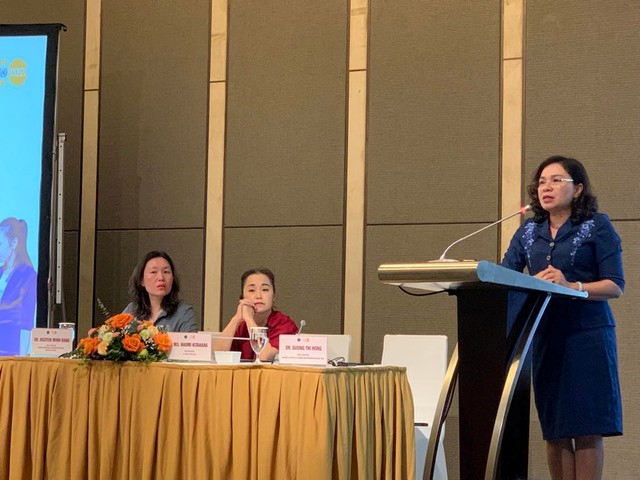 Bà Naomi Kitahara - Trưởng đại diện Quỹ Dân số Liên hợp quốc (UNFPA) tại Việt Nam phát biểu khai mạc tại hội nghị công bố kết quả nghiên cứu về Hiệu quả đầu tư tiêm chủng HPV tại Việt Nam