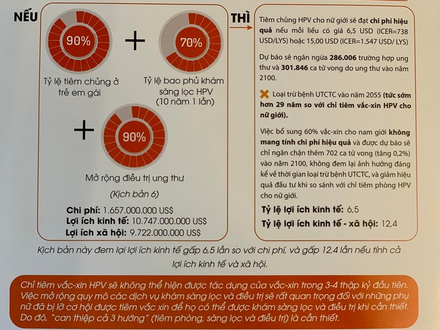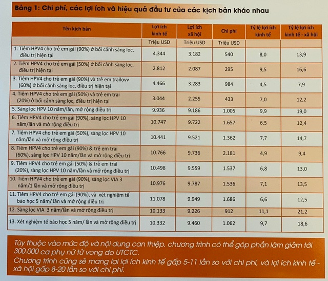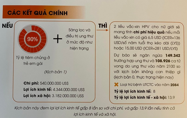 Kịch bản loại trừ Ung thư cổ tử cung vào năm 2084 với chi phí 540 triệu USD mang lại lợi ích kinh tế gấp 8 lần và lợi ích kinh tế xã hội gấp 13,9 lần.