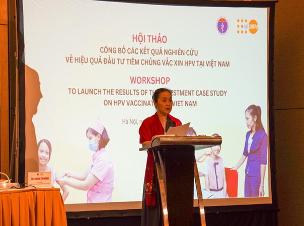 "Hiện nay, vaccine HPV chưa được đưa vào trong Chương trình Tiêm chủng mở rộng, người dân phải trả tiền với chi phí cao hàng triệu đồng/mũi tiêm tại các cơ sở tiêm chủng dịch vụ. Tới đây với sự hỗ trợ của Quỹ Dân số Liên Hợp Quốc, WHO, UNICEF, GAVI, chúng ta sẽ cố gắng tiếp cận việc cung ứng vaccine HPV trong TCMR với giá thành khoảng 6,5 USD/liều vaccine.", PGS.TS. Dương Thị Hồng nói.