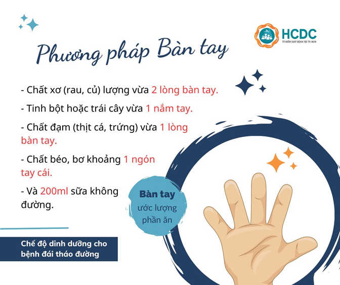 Phương pháp này ước lượng phần ăn đơn giản dựa trên lòng bàn tay. Cụ thể một bữa ăn như sau: