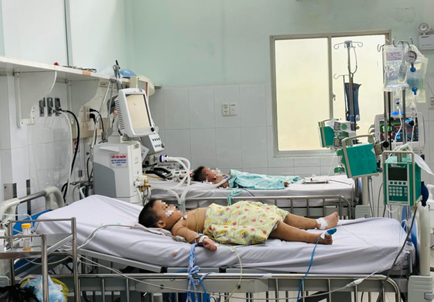 Riêng Khoa Hồi sức nhiễm đang điều trị 8 trẻ, trong đó có 3 trẻ phải thở máy. Mỗi ngày đều có trẻ mắc tay chân miệng nặng mới nhập viện. Các trẻ thường nằm viện tại Khoa 7 - 10 ngày, trong đó đặt nội khí quản 3 ngày, hồi sức 4 - 5 ngày.